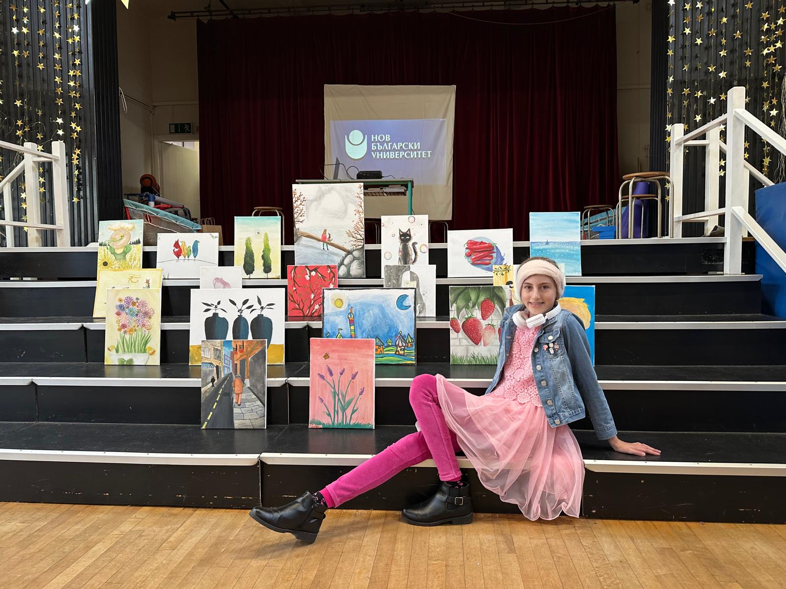 This Saturday, March 29, 2025, Sofia was an active participant in two events. The day began with the charity exhibition at the “AZBUKA” school where she presented, together with her teacher Juliana Mihaylova, watercolors painted over the last 5 years during their online lessons. The audience’s interest was aroused by the method in which the two work together – a common idea on which they paint, but a completely different result.