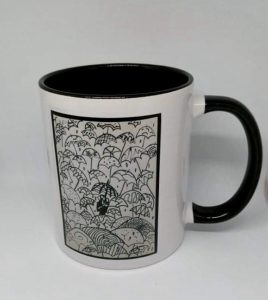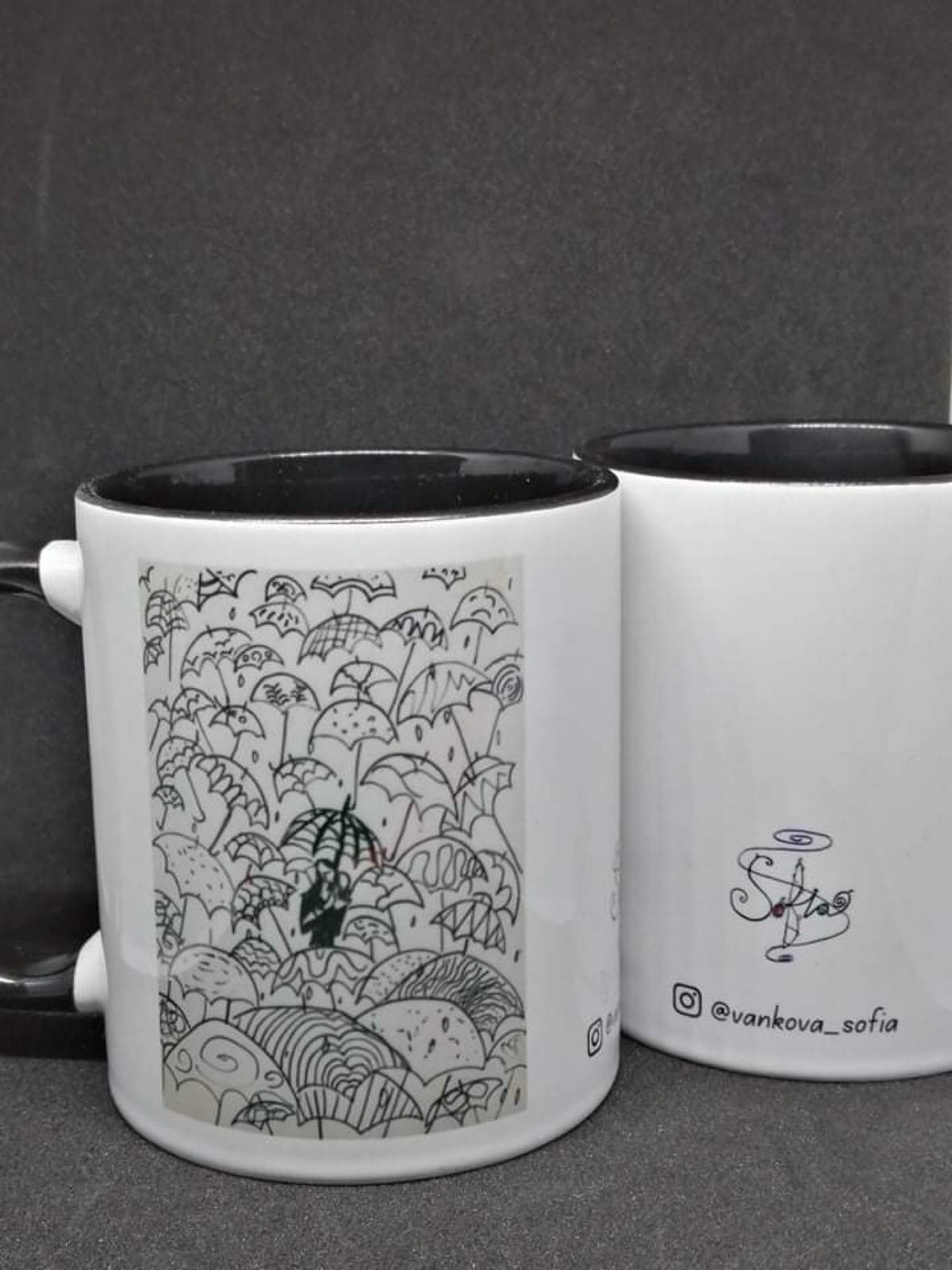 A black and white mug with a drawing I made a few years ago. It’s known for its simple looks, but there’s a meaning behind it.